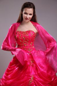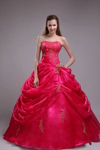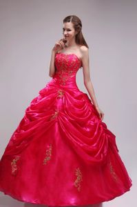 Red Ball Gown Quinceanera Dresses Appliques with Pick-ups