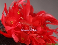 Red Custom Made Headpieces With Beaded Decorate Feather