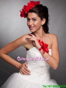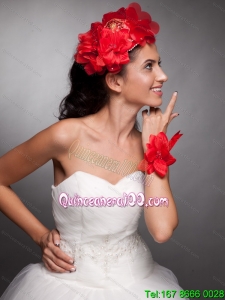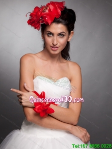 Red Hand Made Flowers Taffeta Headpieces and Wrist Corsage