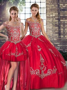 Red Lace Up Sweet 16 Dresses Beading and Embroidery Sleeveless Floor Length