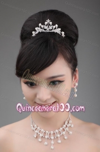 Rhinestone Wedding Jewelry Set In Alloy Including Necklace Earrings And Crown