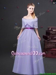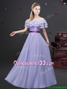 Romantic Off the Shoulder Sleeveless Ruffled Layers and Ruching and Belt Zipper Quinceanera Court of Honor Dress