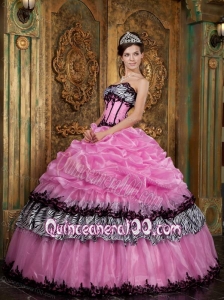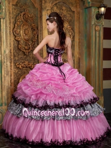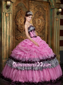 Rose Pink Ball Gown Strapless Pick Up Taffeta 16 Birthday Dress