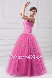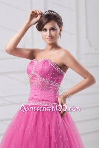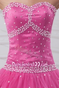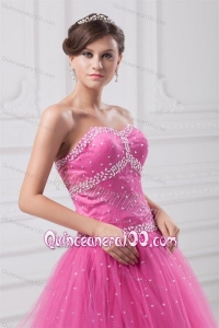 Rose Pink Sweetheart Beaded Decorate Tulle Quinceanera DressRose Pink Sweetheart Beaded Decorate Tulle Quinceanera Dress