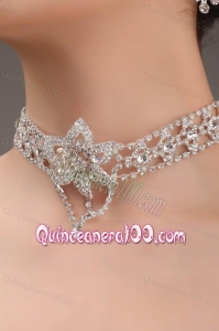 Gorgeous Alloy With Rhinestone Ladies Necklace and Head piece