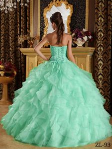 Ruffled Apple Green Ball Gown Sweet 15 Dress with Embroidery