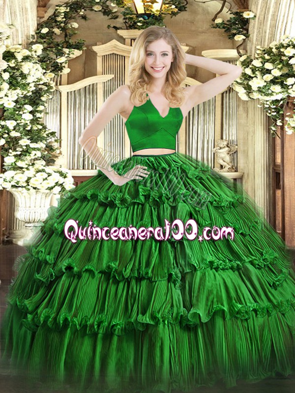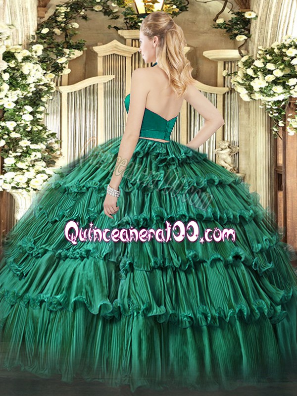 Sexy Organza Halter Top Sleeveless Zipper Ruffled Layers Sweet 16 Dresses in Green