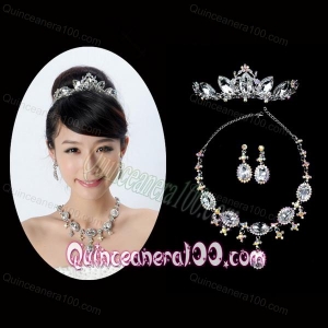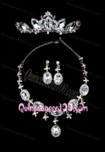 Fashionable Rhinestone Ladies Necklace and Tiara Jewelry Set
