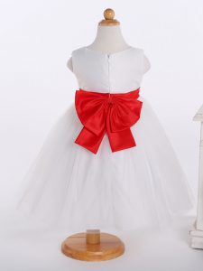 Shining Knee Length White Flower Girl Dresses Scoop Sleeveless Zipper