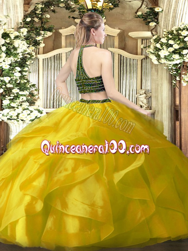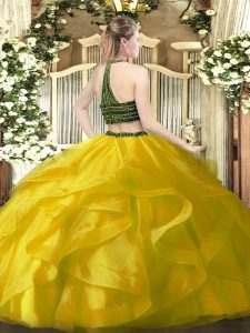 Sleeveless Beading and Ruffles Zipper Vestidos de Quinceanera