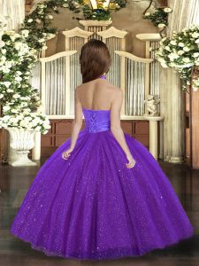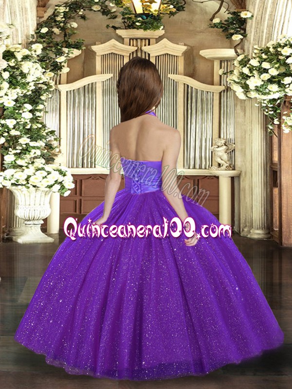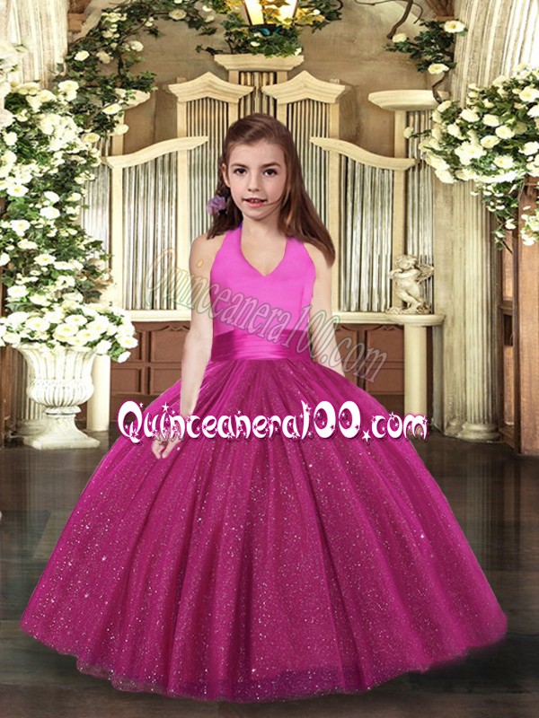Sleeveless Floor Length Ruching Lace Up Little Girls Pageant Dress with Fuchsia