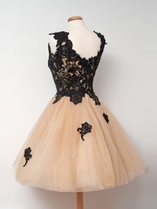 Sleeveless Knee Length Lace Zipper Dama Dress with Champagne