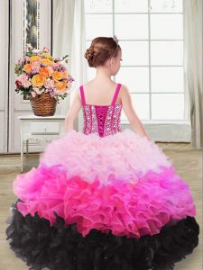 Sleeveless Organza Floor Length Lace Up Child Pageant Dress in Multi-color with Beading and Ruffles