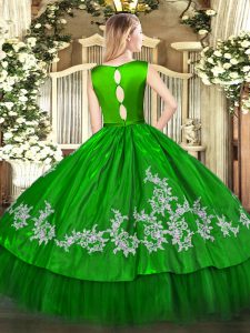 Sleeveless Satin and Tulle Floor Length Clasp Handle Sweet 16 Quinceanera Dress in Fuchsia with Embroidery