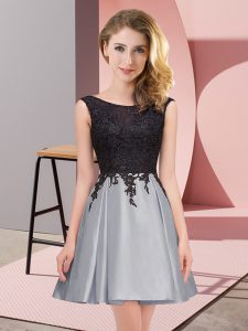Sleeveless Satin Mini Length Zipper Quinceanera Court of Honor Dress in Grey with Lace