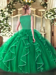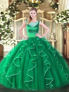 Sleeveless Tulle Floor Length Side Zipper Quinceanera Gowns in Turquoise with Beading and Ruffles