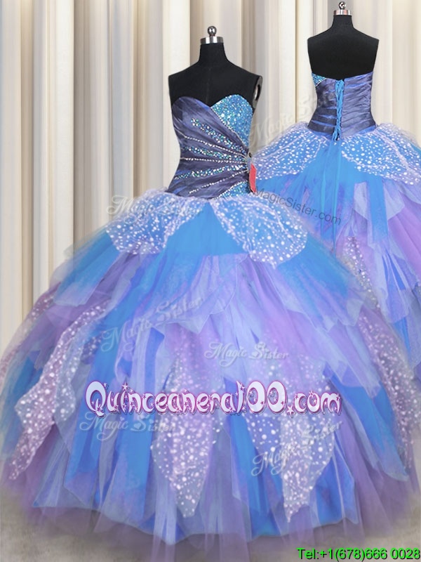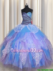 Smart Floor Length Multi-color Sweet 16 Dresses Sweetheart Sleeveless Lace Up