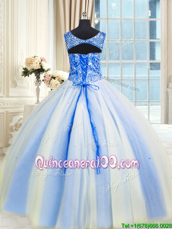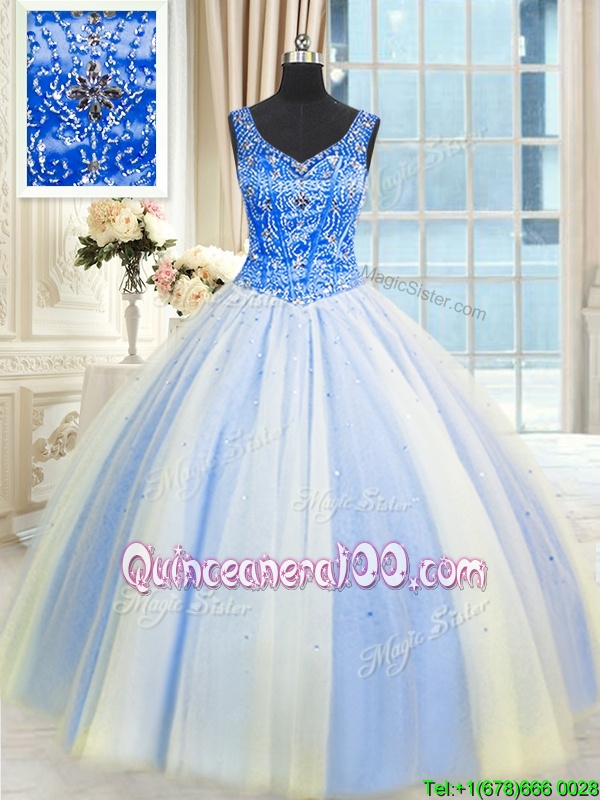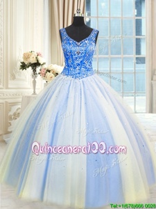 Smart Tulle V-neck Sleeveless Lace Up Beading and Sequins 15 Quinceanera Dress inMulti-color