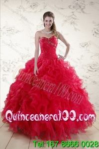 Sophisticated Red Sweetheart Spring Quinceanera Dresses with Ruffles and Beading