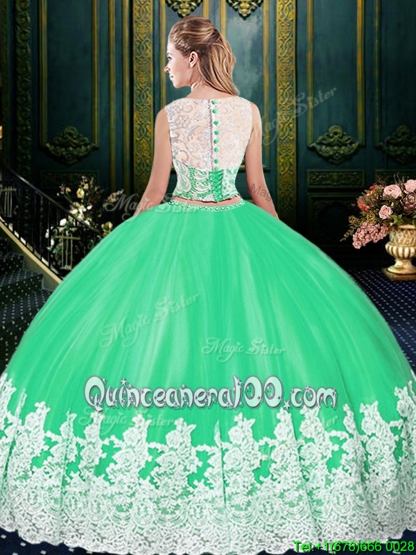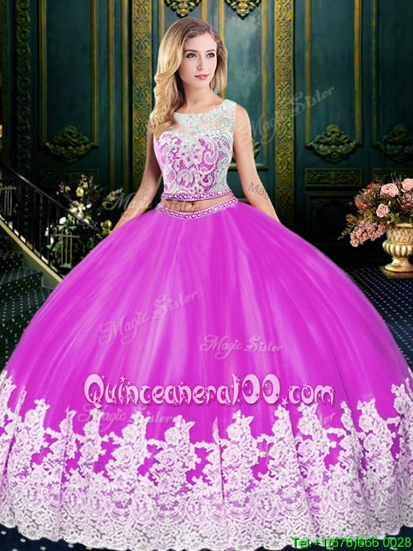 Sophisticated Scoop Lace and Appliques Sweet 16 Dress Fuchsia Zipper Sleeveless Floor Length
