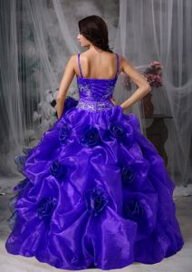 Spaghetti Straps Beading Royal Blue Quince Gown with Ruffles