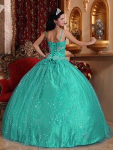 Spaghetti Straps Beading Turquoise Dresses for 15 with Sequins
