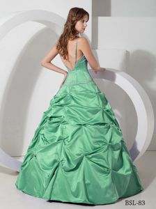 Spaghetti Straps Green Taffeta Sixteen Dresses with Pick-ups