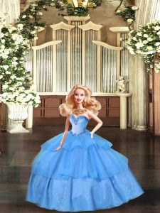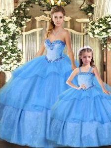 Spectacular Sleeveless Floor Length Beading and Ruffled Layers Lace Up Quinceanera Gowns with Baby Blue