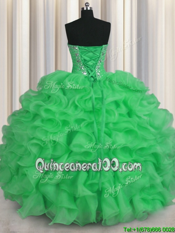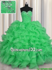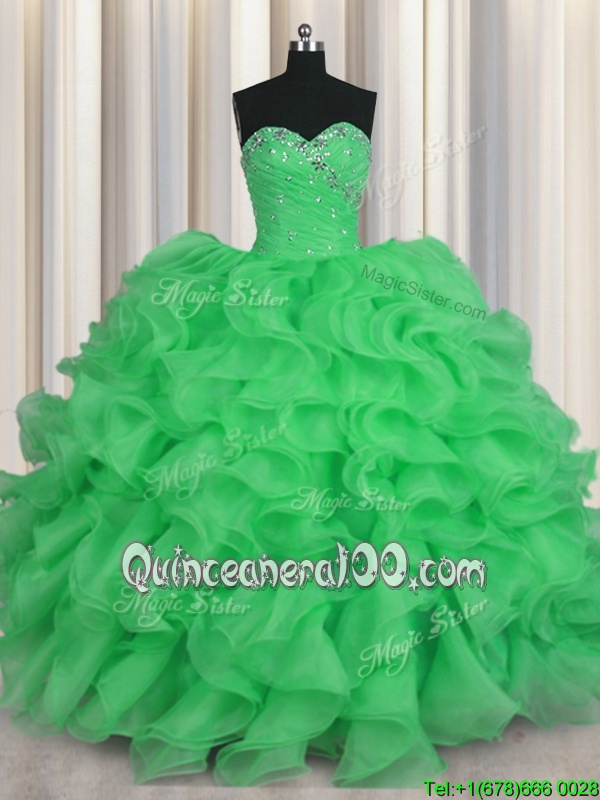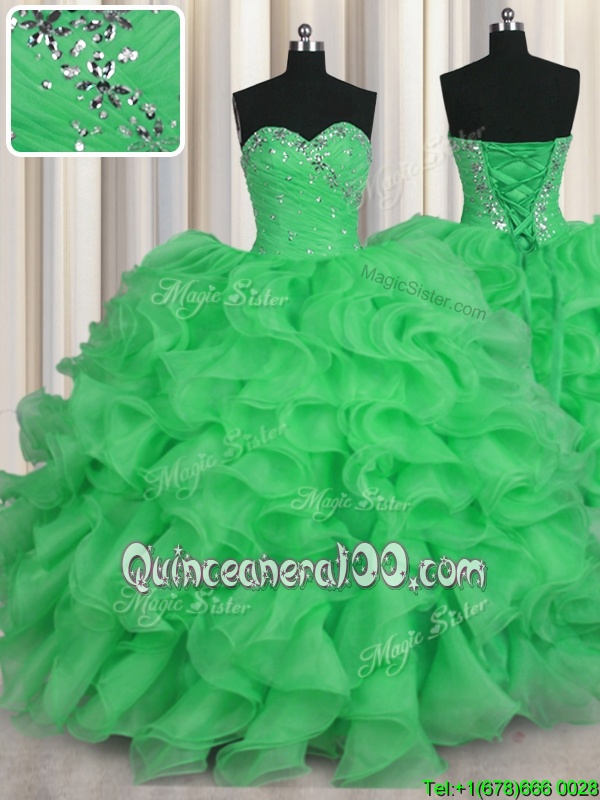 Spring and Summer and Fall and Winter Organza Sleeveless Floor Length Sweet 16 Dresses andBeading and Ruffles