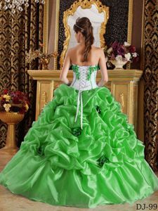 Spring Green and White Sweet 15 Dresses with Pick-ups and PleatsSpring Green and White Sweet 15 Dresses with Pick-ups and Pleats
