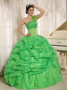 Spring Green One Shoulder Quinceneara Dresses with Pick-upsSpring Green One Shoulder Quinceneara Dresses with Pick-ups