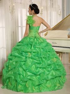 Spring Green One Shoulder Quinceneara Dresses with Pick-ups