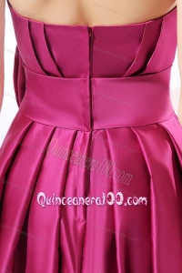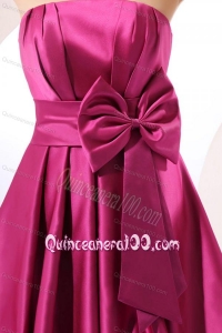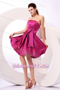 Strapless Fuchsia Dresses for Dama with Bow Knot A-line Knee-length