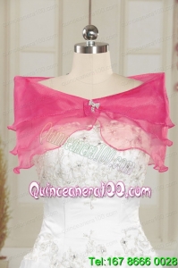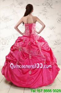 Strapless Hot Pink Quinceanera Dress with Appliques for 2015