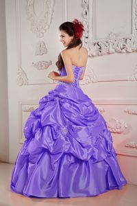 Strapless Pick-ups Appliques Quince Dresses with Beading in LilacStrapless Pick-ups Appliques Quince Dresses with Beading in Lilac