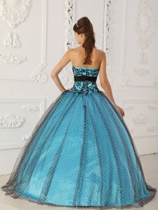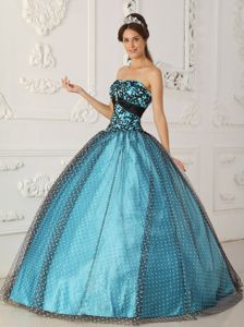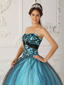 Strapless Tulle Black Blue Appliques Sweet 15 Dress Beaded