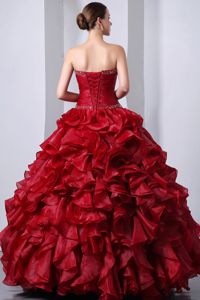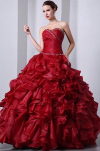 Strapless Wine Red Beading Ruffled Dresses for 15 Custom Made