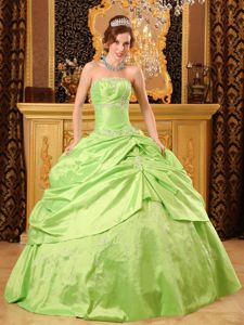 Strapless Yellow Green Quinces Dress in Taffeta with Beading