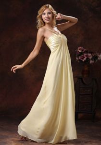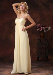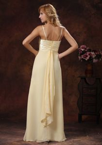 Straps Ruched Bodice Chiffon Dama Dress in Light Yellow