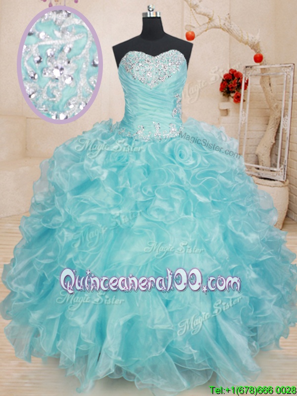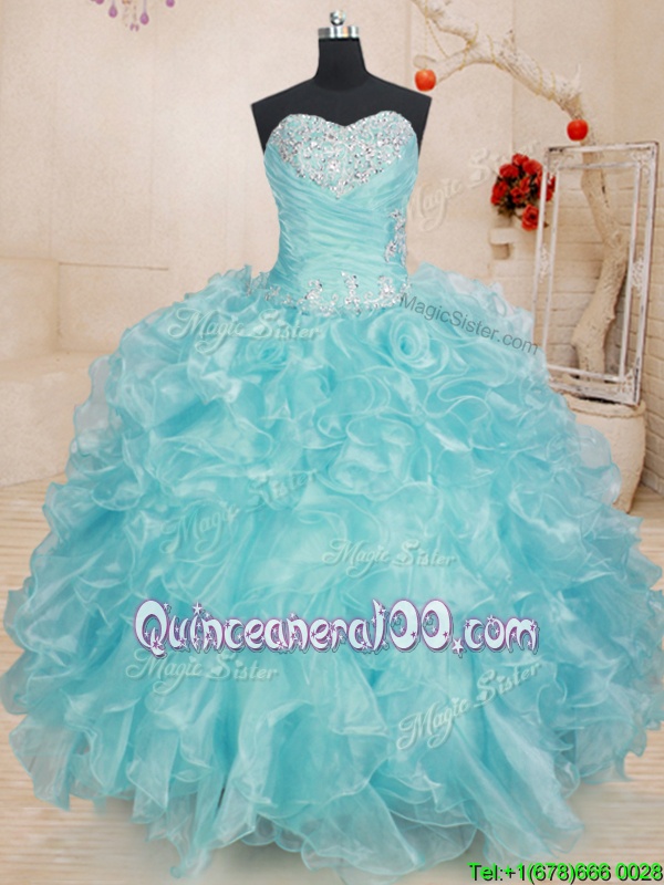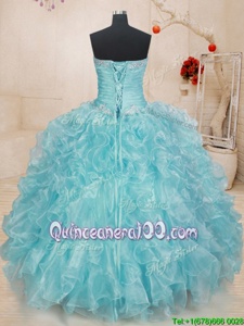 Stunning Blue Lace Up Vestidos de Quinceanera Beading and Ruffles Sleeveless Floor Length