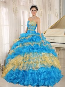 Stylish Multi-color 2014 Hilary Swank Quinceanera Dress with Appliques and RufflesStylish Multi-color 2014 Hilary Swank Quinceanera Dress with Appliques and Ruffles