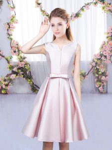 Sumptuous Baby Pink Vestidos de Damas Wedding Party with Bowknot V-neck Sleeveless Lace Up