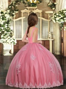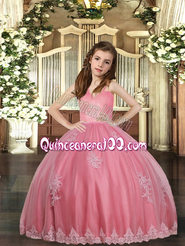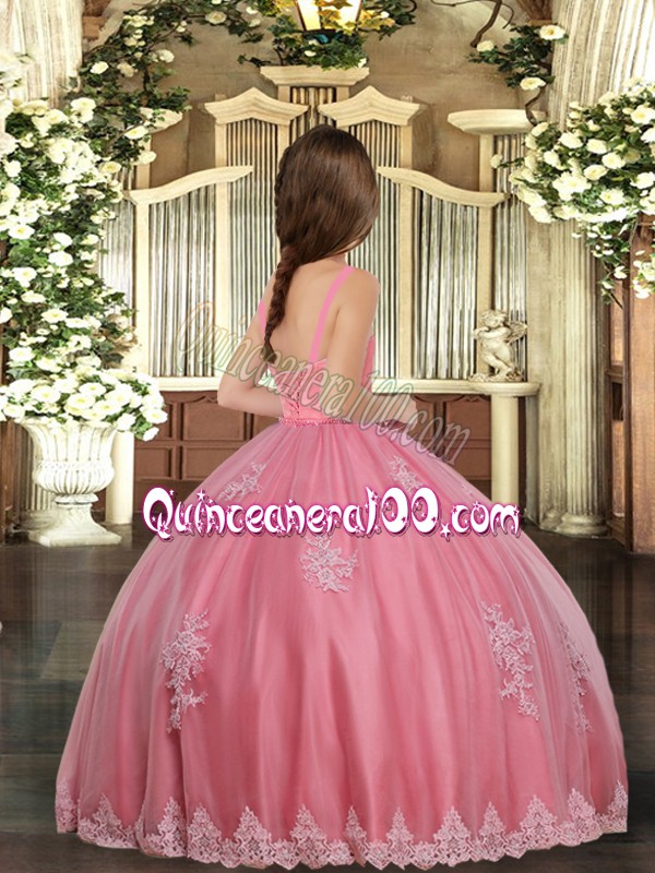 Super Watermelon Red Sleeveless Tulle Lace Up Girls Pageant Dresses for Party and Sweet 16 and Wedding Party