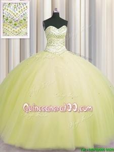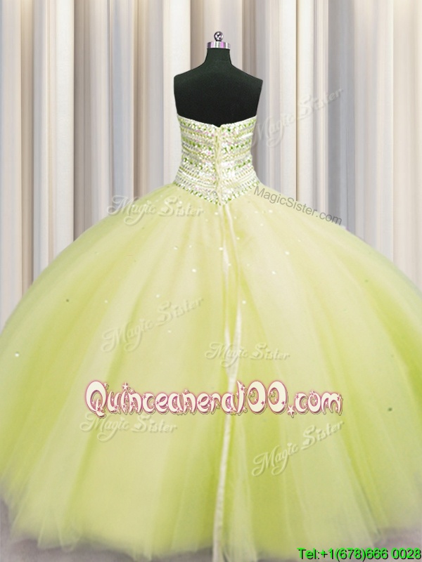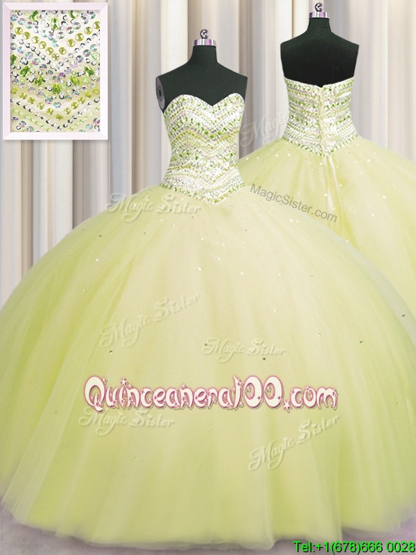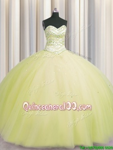 Superior Bling-bling Puffy Skirt Spring and Summer and Fall and Winter Tulle Sleeveless Floor Length Sweet 16 Dresses andBeading