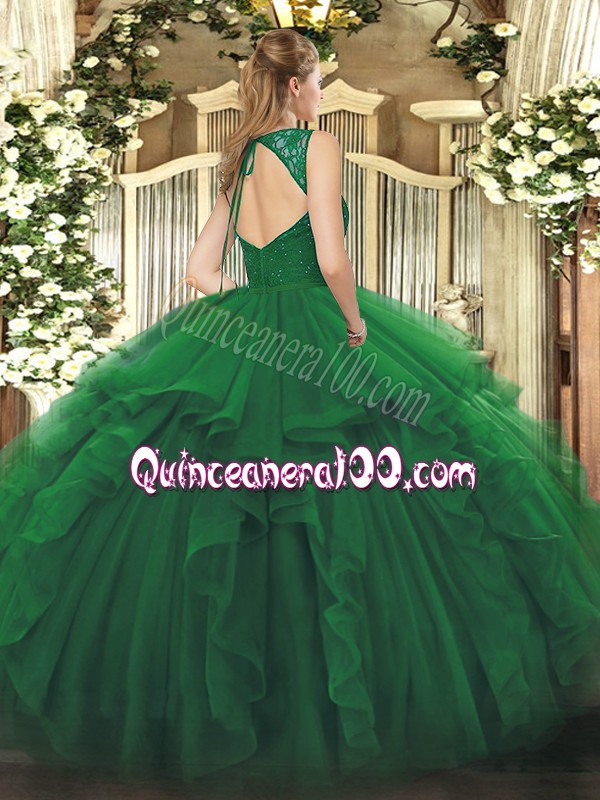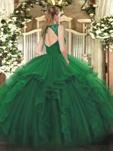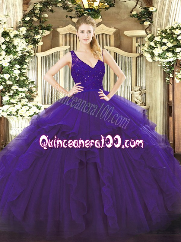 Superior Sleeveless Zipper Floor Length Beading and Ruffles 15th Birthday Dress