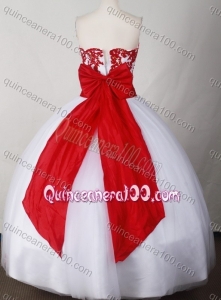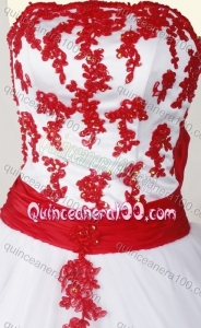 Sweet Ball Gown Strapless White Quinceanera Dress with Red Appliques
