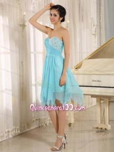 Sweetheart Asymmetrical Beading Aqua Blue 16 Birthday Party Dress