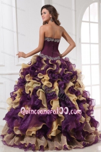 Sweetheart Beading and Ruffles Organza Multi-color Quinceanera Dress