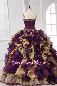 Sweetheart Beading and Ruffles Organza Multi-color Quinceanera DressSweetheart Beading and Ruffles Organza Multi-color Quinceanera Dress