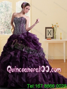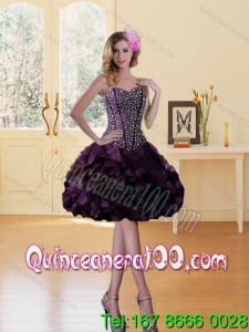 Sweetheart Burgundy Spring Quinceanera Dresses with Ruffles and Beading